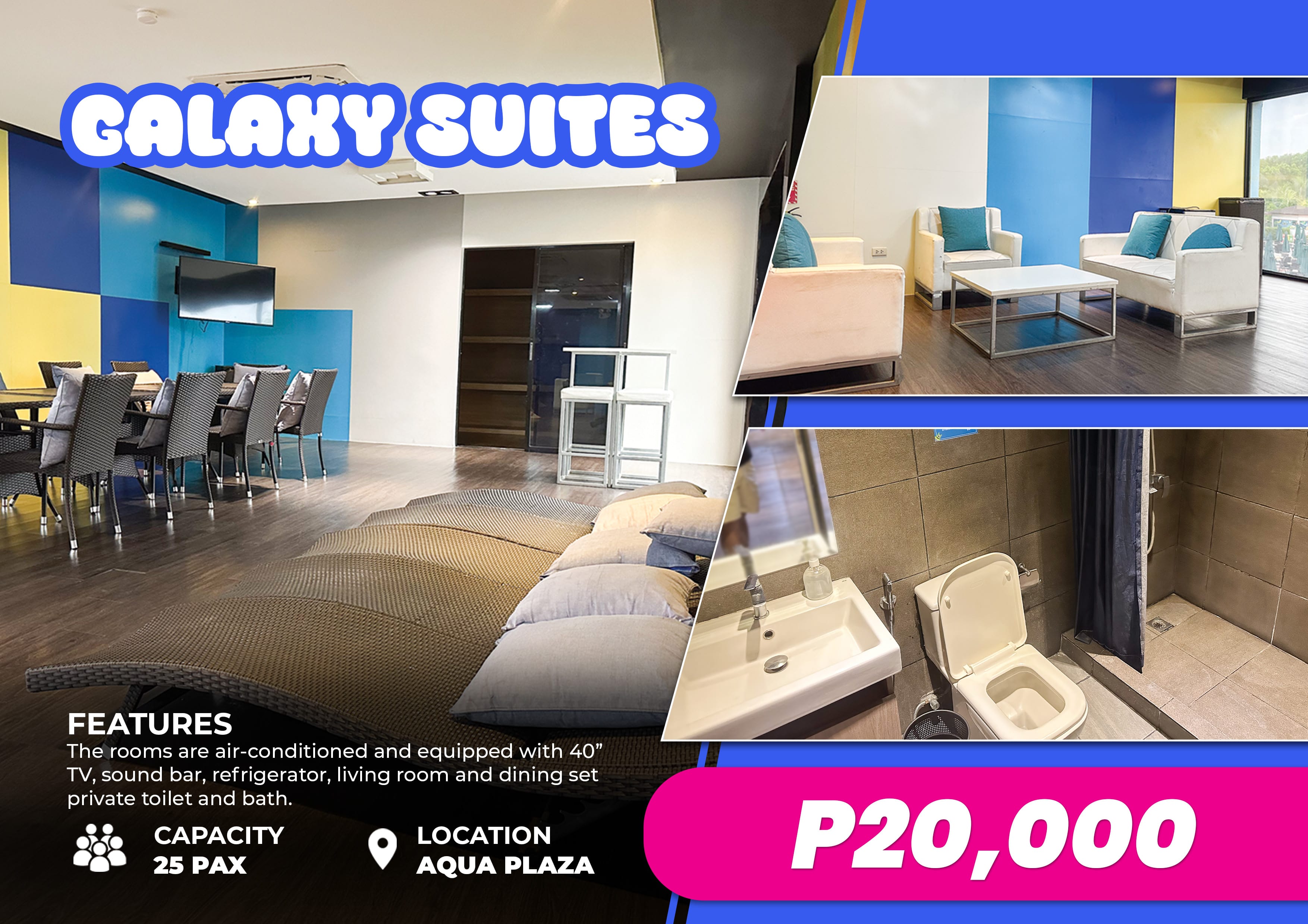 This spacious air-conditioned room is great for bigger accommodations. It is equipped with 40" TV, sound bar, mini refrigerator, living room, dining set, and a safety deposit box. It provides comfort and ease with its private toilet and bath and a spacious walk-in closet. This room is ideal for larger groups or families looking for comfort, privacy and space.